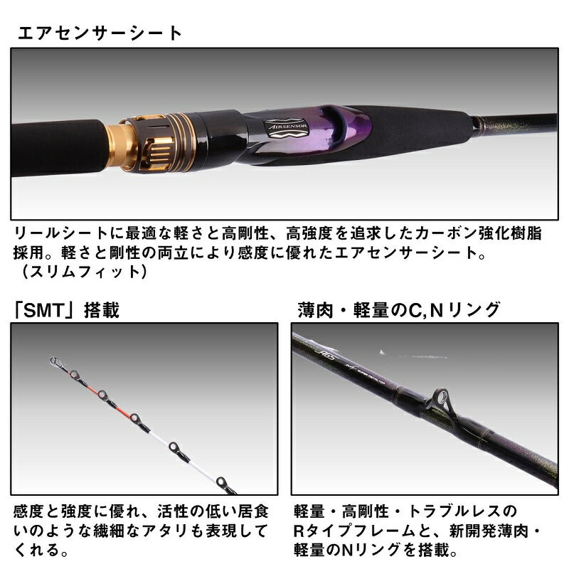 しなやかながら、高感度を誇る『SMT』を穂先部に採用。ガイドにはRタイプフレームとNリングを組み合わせた『AGS』を採用し、軽量化と穂先のブレを軽減。