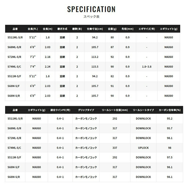 ※S511ML-S/R(オールラウンド系ショートロッド)