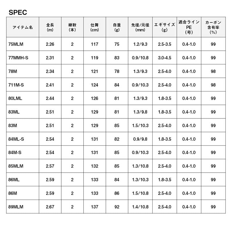 ソリッドティップ(-S)モデルは繊細かつ、高感度なメガトップ採用。