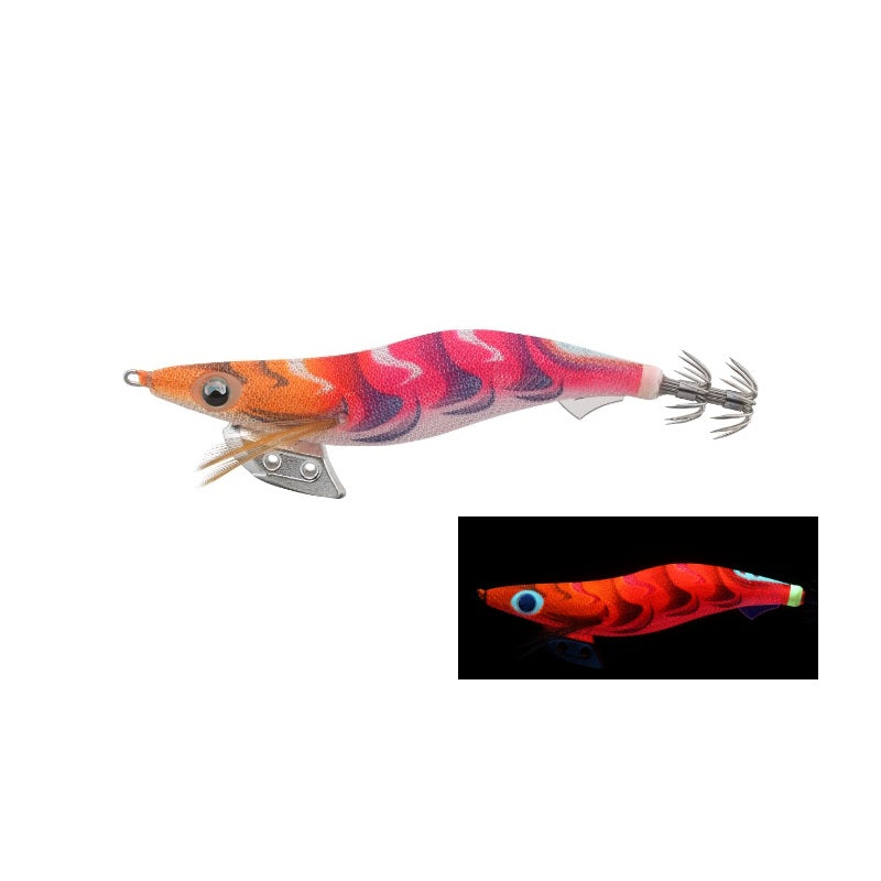 ローライトでも視認性が良く、ネオンブライトレッドがマヅメ時特有の赤い光を受けることにより、エギの存在を強調する。