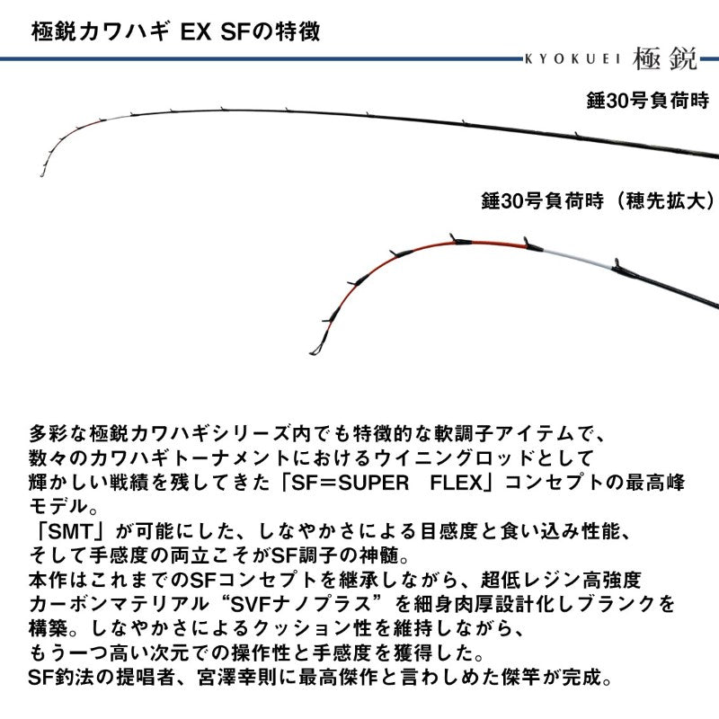 多彩な極鋭カワハギシリーズ内でも特徴的な軟調子アイテムで、数々のカワハギトーナメントにおけるウイニングロッドとして輝かしい戦績を残してきた「SF=SUPER FLEX」コンセプトの最高峰モデル。