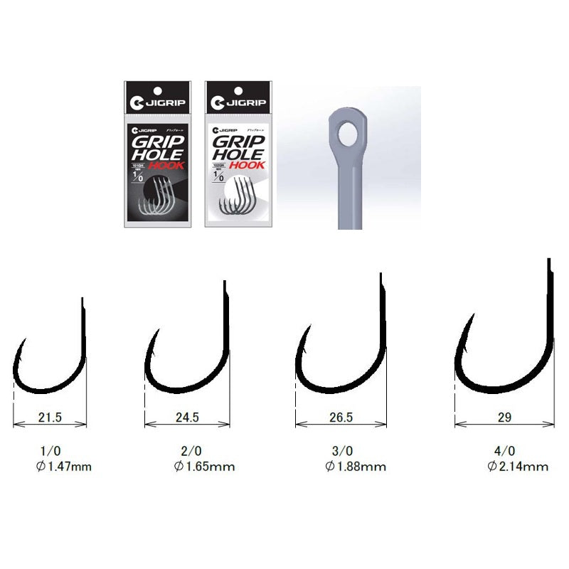 タタキ幅を最小に抑え、肉厚に成形したヘッドに高精度の穴明加工を施す事により、タタキ鈎の流用では難しかった高強度の根付けと、カン付鈎ではできなかった軽量化を実現。