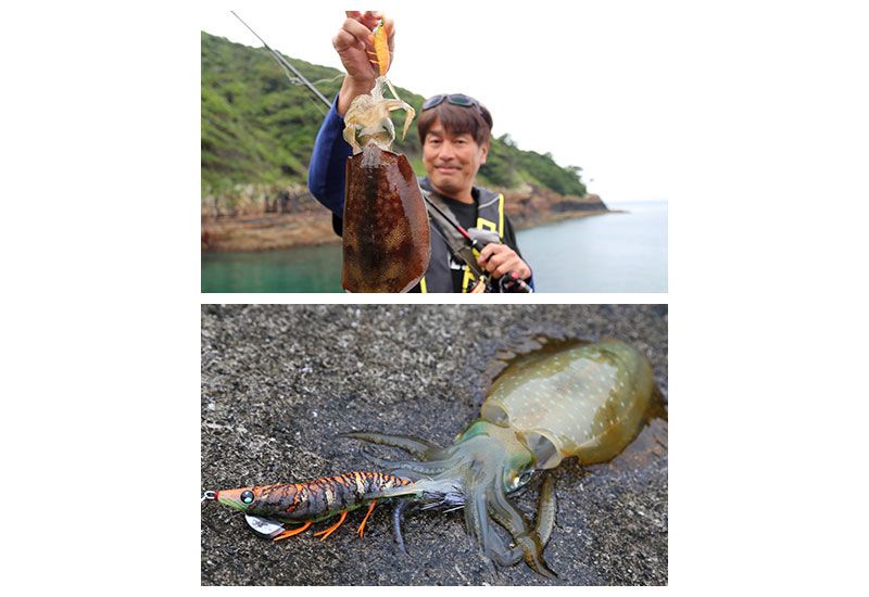 レッド下地に赤ベースのカラーは光が届かない状況でシルエットがハッキリし、アオリイカが見やすく闇夜で有効。