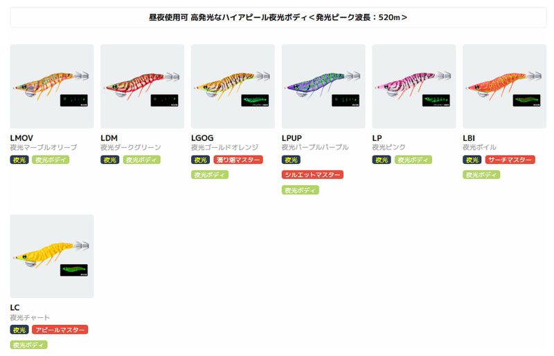 夜光ボディの高発光で遠くのイカを寄せる力を持つため、いるかいないか一投目のサーチ的な使い方におすすめ。