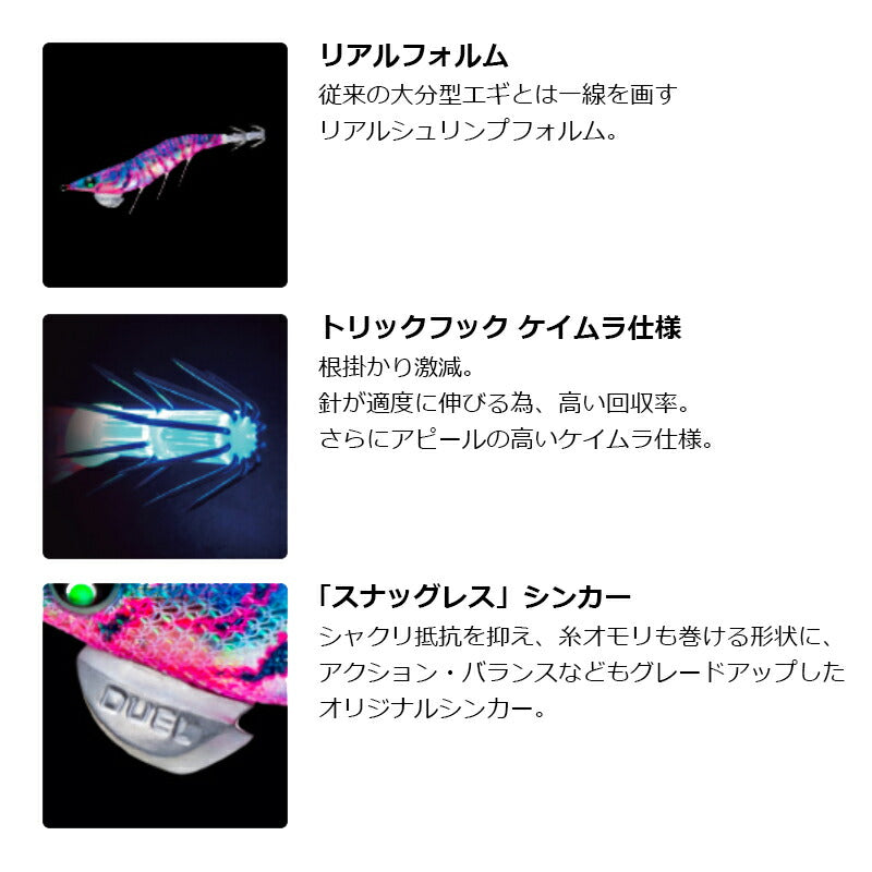 釣れる波動を継承しながら、紫外線発色のカラーでもイカにアピール。
