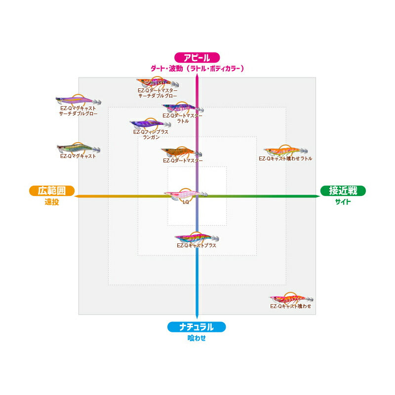 夜光ボディの高発光で遠くのイカを寄せる力を持つため、いるかいないか一投目のサーチ的な使い方におすすめ。
