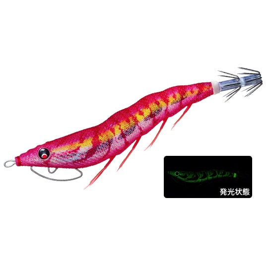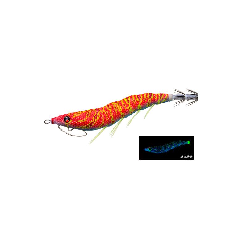 レッド下地に赤ベースのカラーは光が届かない状況でシルエットがハッキリし、アオリイカが見やすく闇夜で有効。