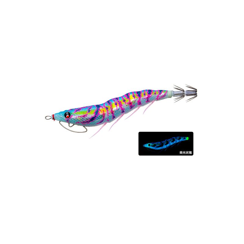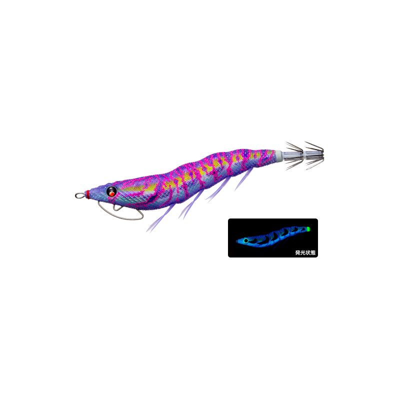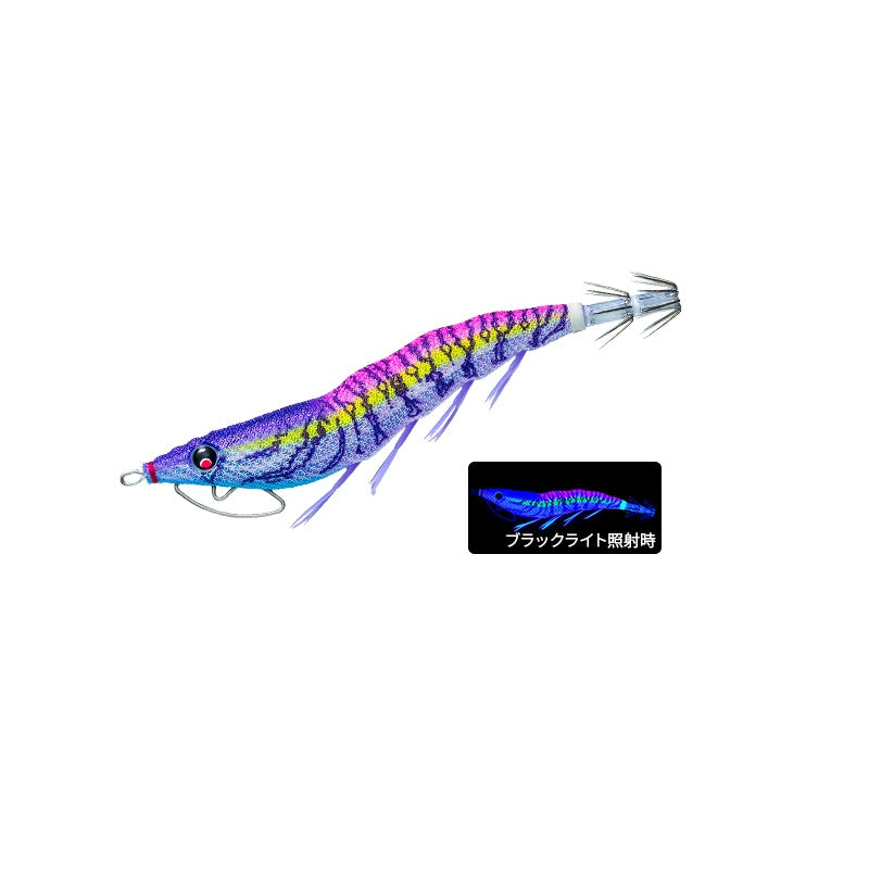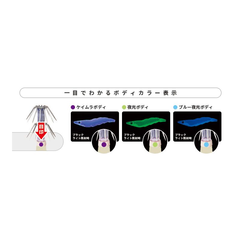 イカの視認性が高いスーパーブルー夜光をベースに薄めのパープルを組み合わせたカラーは広範囲のイカを寄せる力が抜群。●システムカラー