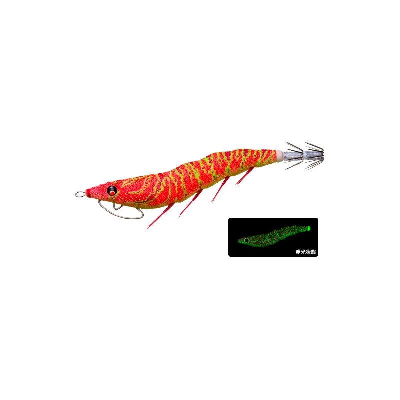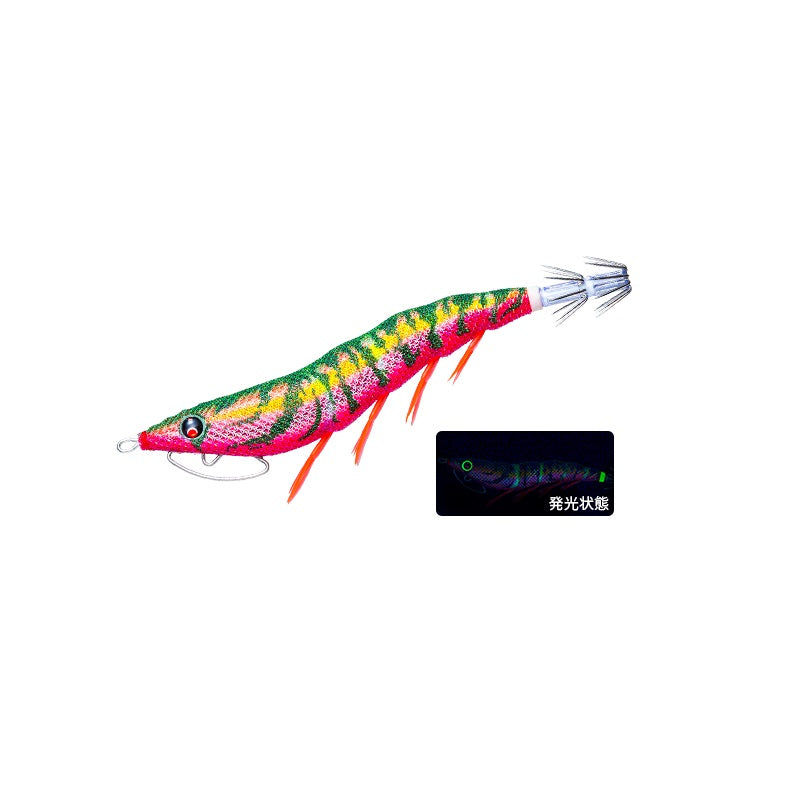 レッド下地に赤ベースのカラーは光が届かない状況でシルエットがハッキリし、アオリイカが見やすく闇夜で有効。