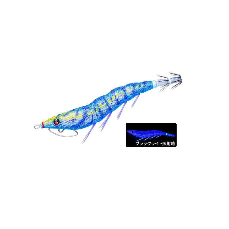 ケイムラ発光+ナチュラルなブルーで澄潮時の警戒心の強いイカをしっかり抱かせます。