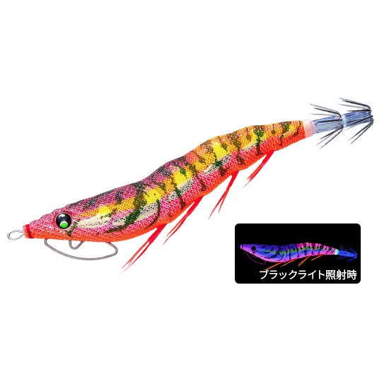 ※シルエットがしっかりでる赤ベースにナチュラルなグリーンの組み合わせ。夜光の光で深場の低活性のイカも反応させてしまいます。