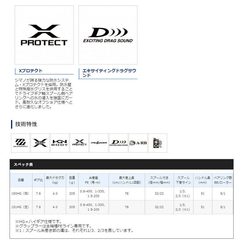 シマノが誇る強力な防水システム・Xプロテクトを採用。防水壁と特殊撥水グリスを併用することでドライブギア軸スプール側ベアリングへの水の浸入を強固にガード。
