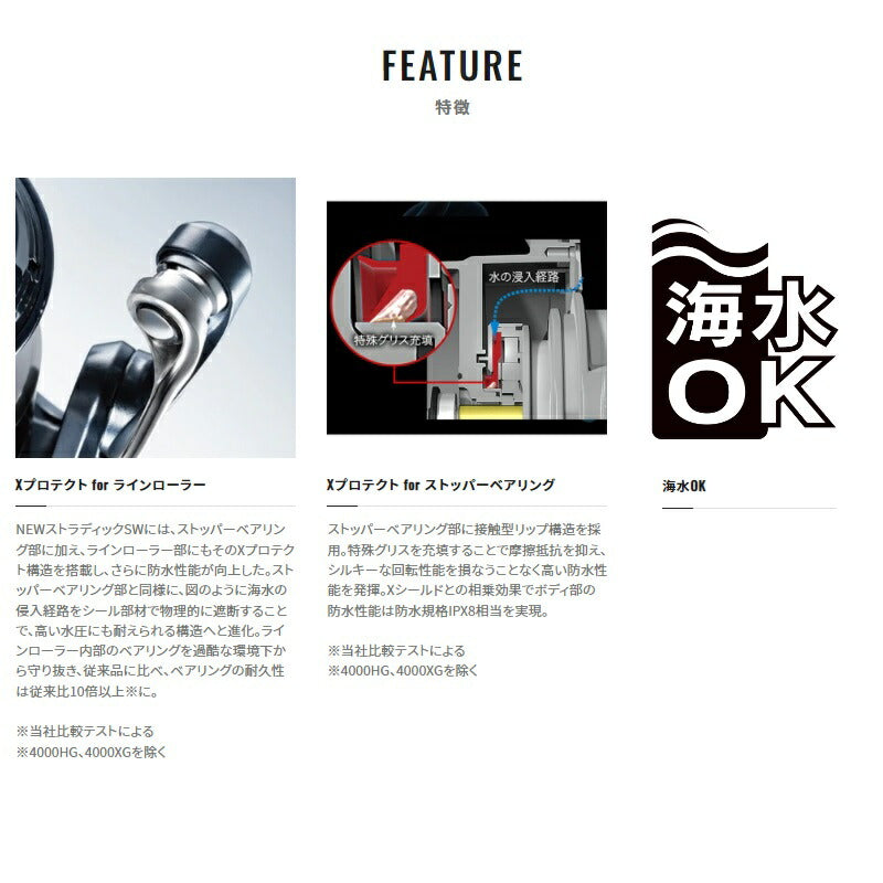 NEWストラディックSWには、ストッパーベアリング部に加え、ラインローラー部にもそのXプロテクト構造を搭載し、さらに防水性能が向上した。