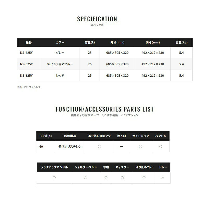 最大50cmの魚を曲げずにまっすぐ収納が可能。専用設計された断熱材を全面に配置することで、I-CE値40hという高い保冷力を確保。