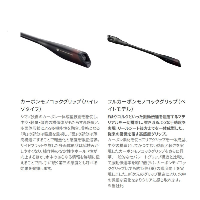 またベイトモデルには、リールシート後方からリアグリップまで中空一体成型のフルカーボンモノコックを採用。