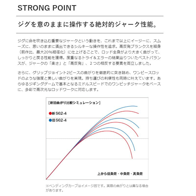 ロッド全身がより大きく曲がって、しっかりと戻る性能を獲得。