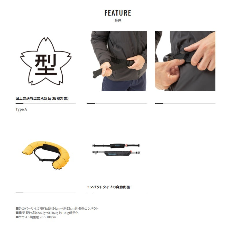 従来のシマノのラフトエアジャケットと比べ、外カバーサイズは約40%のコンパクト化、そして軽量化に成功。
